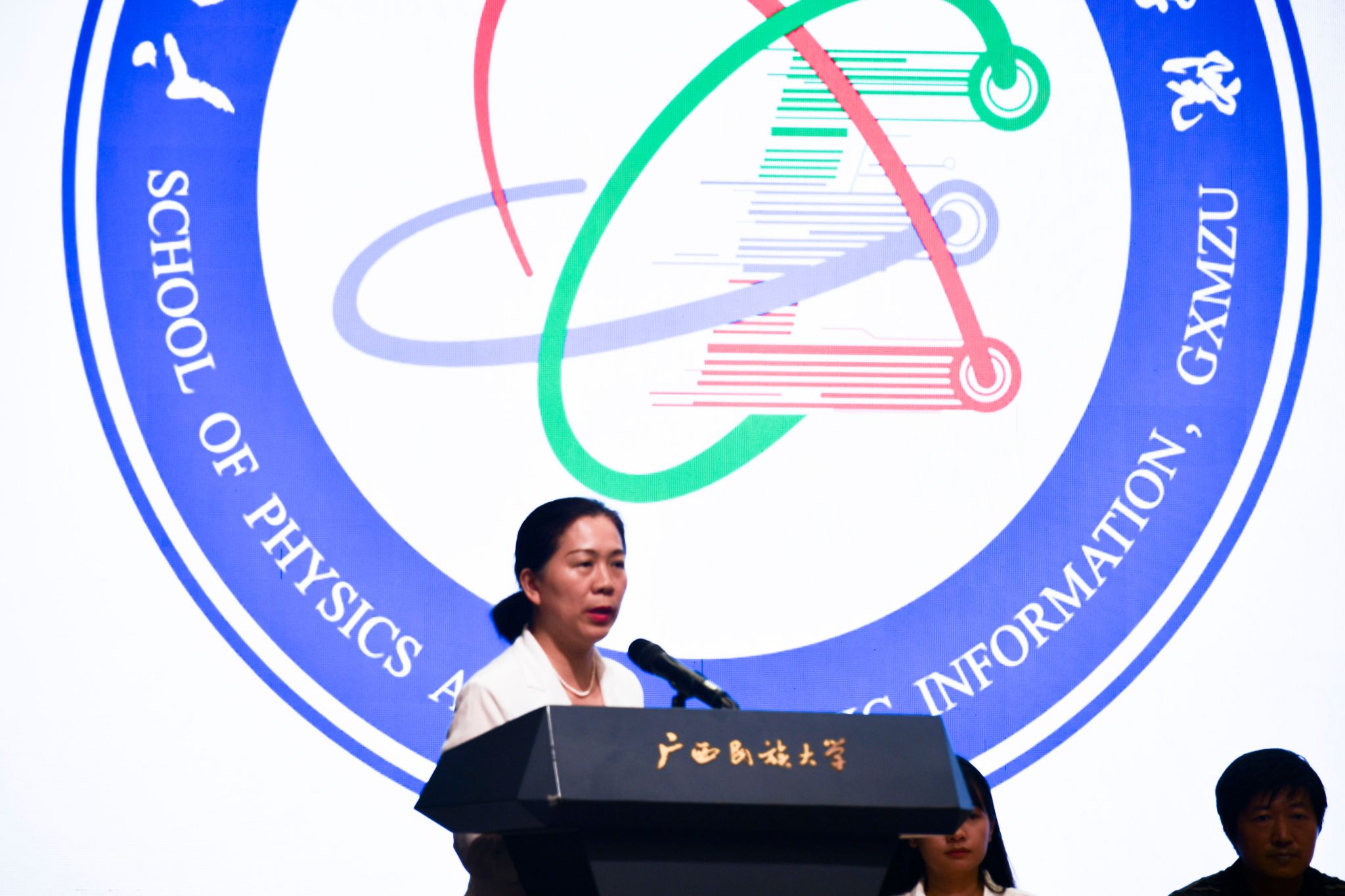 通信工程系王黎明老师作为教师代表发言。他分享带领学生架设流星雷达、攻关电离层探测并保送深造的案例,鼓励大家勇敢走进实验室,在专业竞赛中锤炼真本领,敢于追问、勇于探索,让大学生活因科研而精彩。新生代表2025级电子信息工程专业彭永炎在典礼上发出青春宣言:保持好奇、勇于实践、互助同行,把复杂公式和严谨实验化作成长阶梯。他倡议全体新生以奋斗姿态携手共进,用热情与实干在物理与电子信息的世界里乘风破浪,书写属于自己的精彩篇章。2024级物理学专业硕士研究生谢倩珠作为在校生代表发言。她结合校训分享了自己的学习和科研体会,以“厚德”坚守学术道德,以“博学”跨界计算科学,以“和而不同”在团队协作中保持独立思辨。