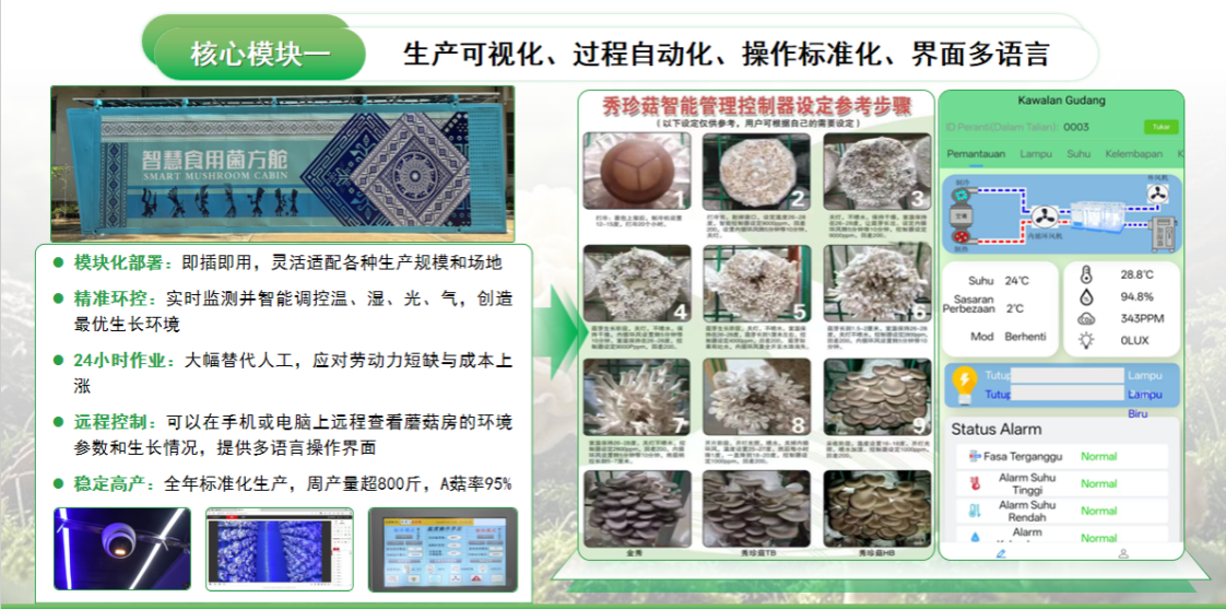 面对食用菌领域缺乏标准化数据集的挑战,我院李云教授团队扎根生产一线,历时两年开展三十余次模组实验,构建起秀珍菇生长的精准环境参数模型。团队创新性地将微光图像增强技术应用于高湿昏暗的菇房环境,结合“云—边—端”协同架构,实现了蘑菇生长状态的智能感知与决策控制。这一由我院主导研发的AI模型,成为智慧方舱的“大脑”,使秀珍菇生产周期缩短至5天,A品率稳定在95%以上。