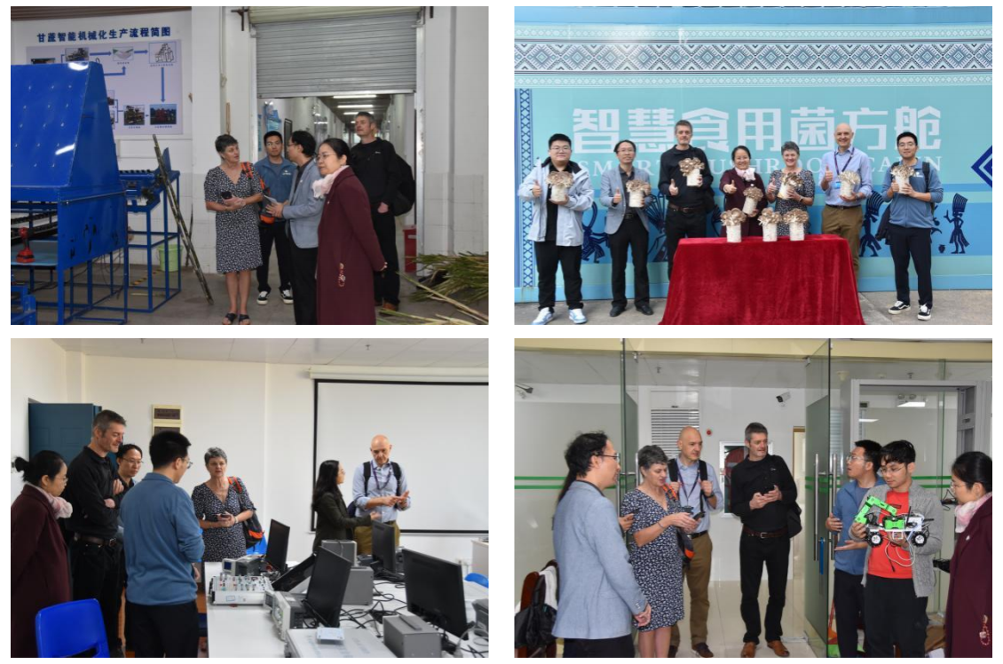代表团一行详细了解了学院的基本情况,参观了学院的办公场所、实验室以及智能甘蔗切种机、数字智慧蘑菇仓等特色项目实施现场。代表团对学院将人工智能、物联网技术与农业产业深度融合的创新实践表现出浓厚兴趣,并对学院在智能农业装备研发方面取得的成果表示赞赏。