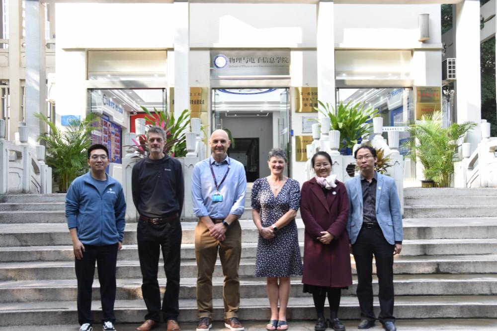 12月9日上午,在国际交流合作处的带领下,英国斯泰福厦大学代表团Johnathan博士、Sarah博士和Jim博士访问广西民族大学物理与电子信息学院交流参观。我院李云教授、韦峻峰老师、王黎明老师陪同参观。