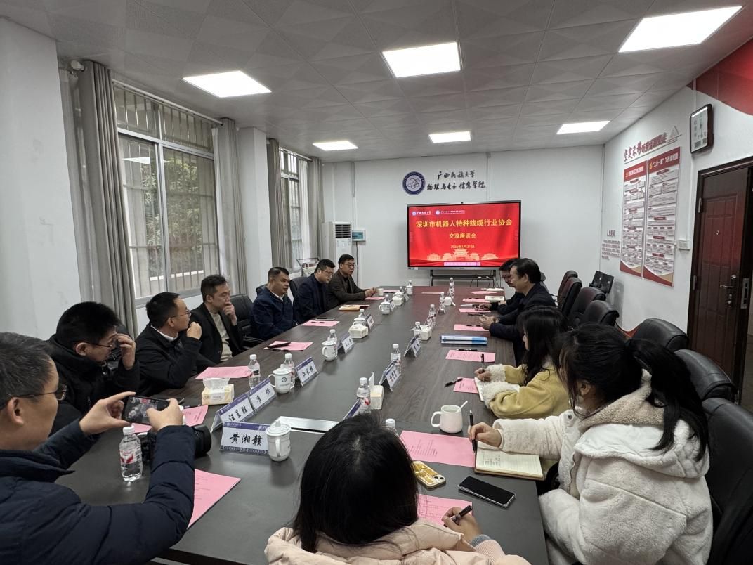 1月21日上午,深圳市机器人特种线缆行业协会一行到访我院,双方于博识楼300会议室举行交流座谈会。协会会长张海斌、秘书长黄湘赣等企业代表,与我院党委书记覃志和、副院长卢振坤、李云教授等教师代表共同出席会议。会议由卢振坤主持。