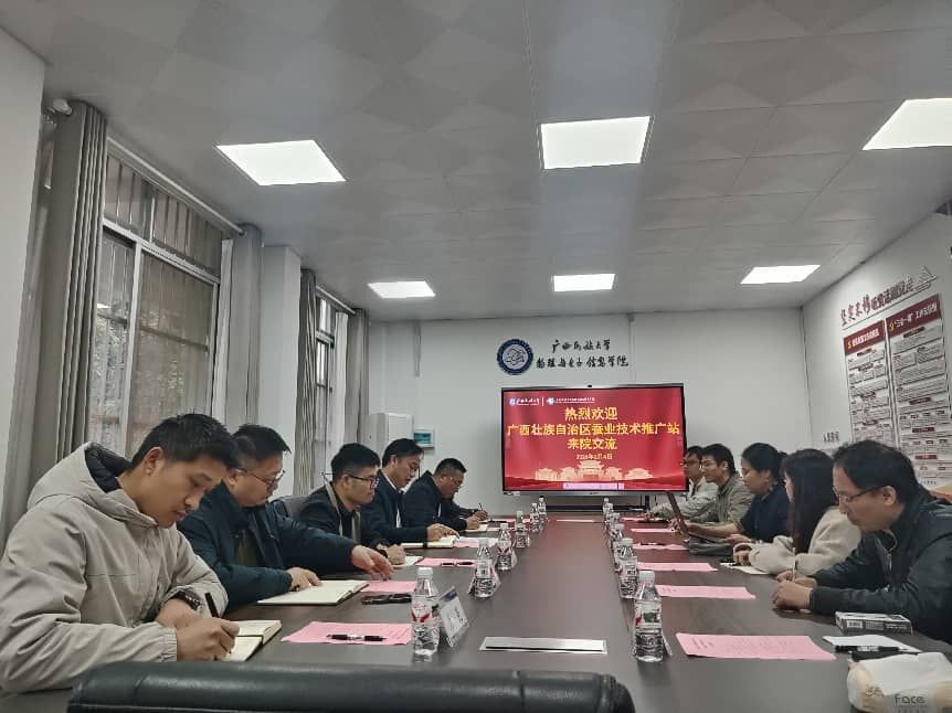 2月4日,广西蚕业技术推广站党委书记、站长卿军一行莅临我院,就智慧农业、人工智能与蚕桑产业融合发展等议题与我院开展交流。我院教师李云、韦峻峰、吴伟林、杨蕾蕾、谢忠坚等参加此次交流。