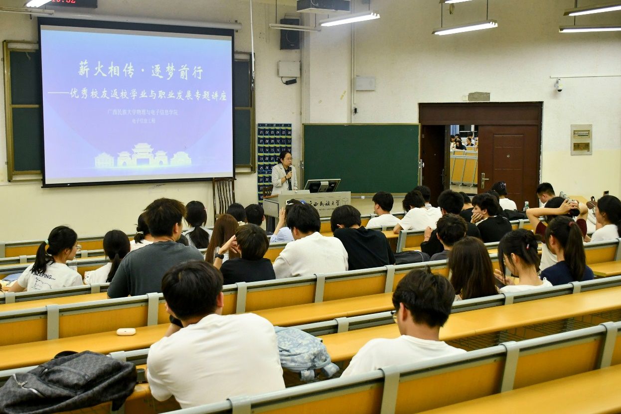 为充分发挥优秀校友的榜样引领作用,帮助在校学子明晰学业方向、规划职业发展,4月9日,我院举办优秀校友返校分享会暨职业生涯规划讲座。2020级电子信息卓越人才实验班的陈国亮、梁钰墁、何秉伸、黄长晖、唐雨曹、黄小琼、陈戈易等7位优秀校友重返母校,与在校学子面对面交流分享。我院院长李云出席活动并致辞,全院各年级众多学生到场聆听。